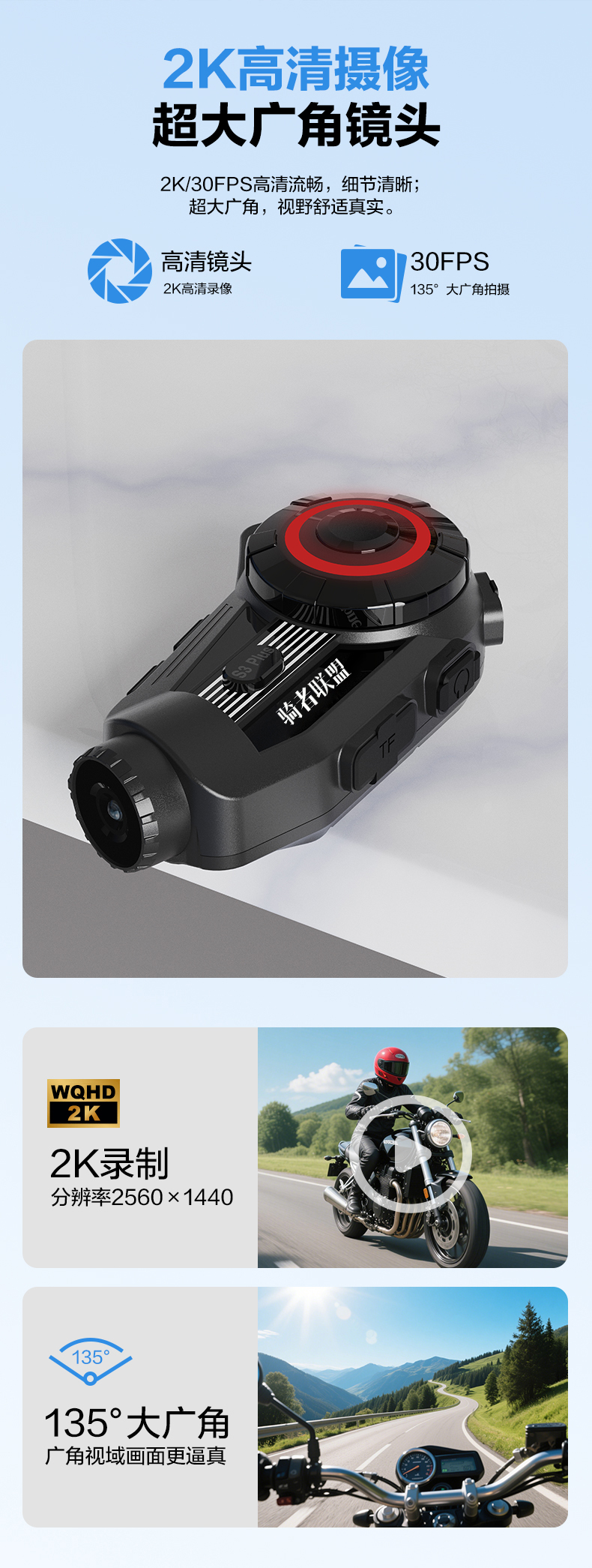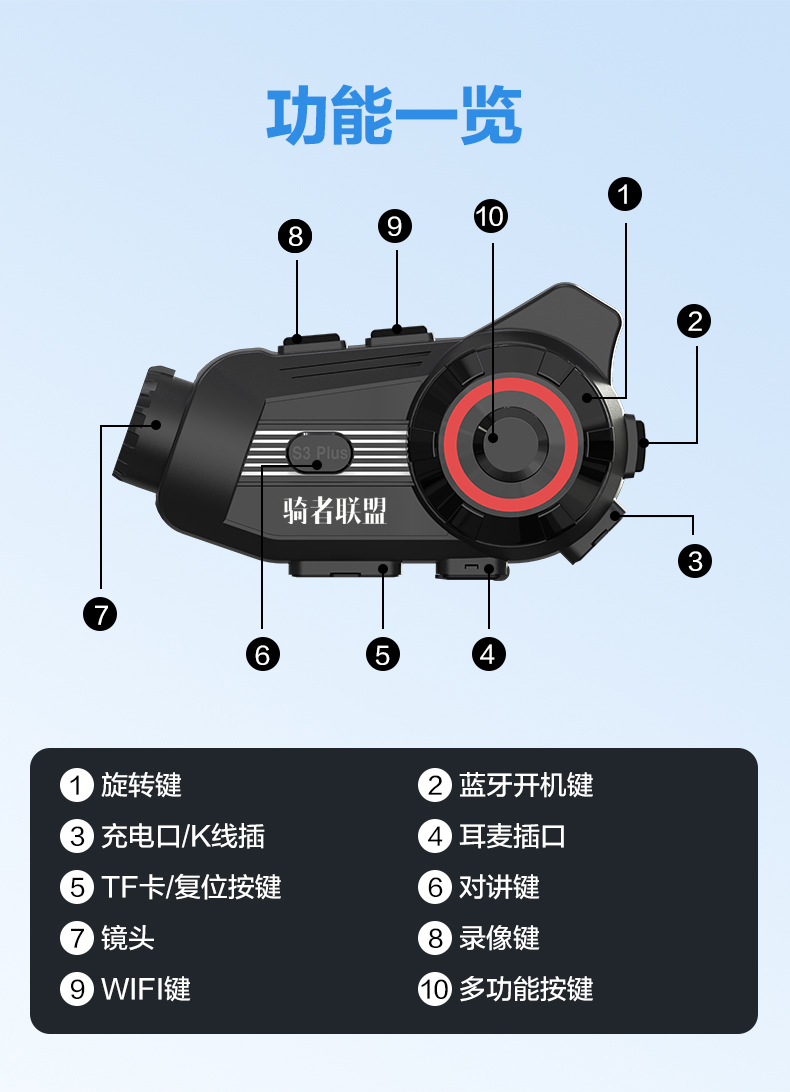 | 骑者联盟定制头盔蓝牙耳机S3 PLUS 2K | |