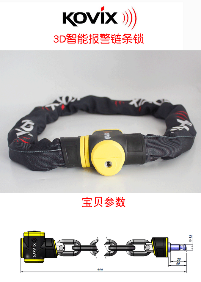 | 产品编号: | KCL10-150 链条加锁头带报警(USB充电2017年最新款) |
