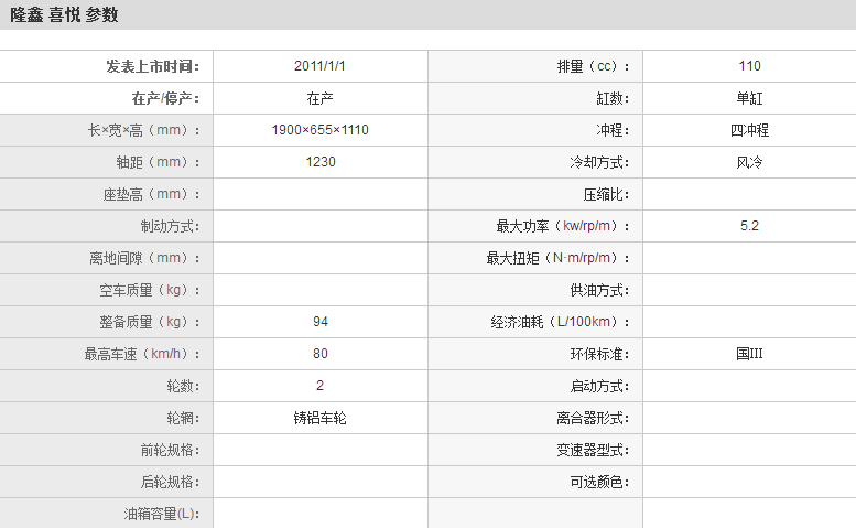 | 隆鑫 喜悦 LX110-31A(WDX) | |