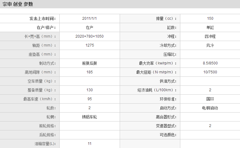| 宗申 创业 ZS150-6B | |
