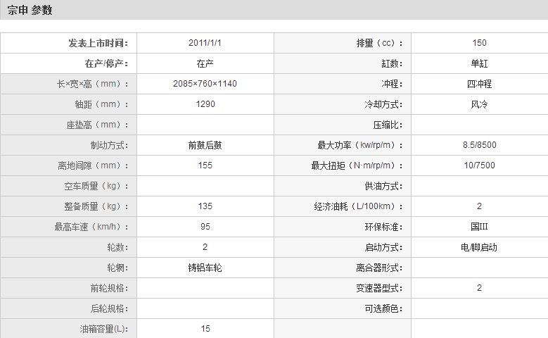 | 宗申 ZS150-38A | |