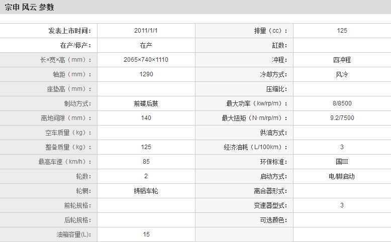 | 宗申 风云 ZS125-55F | |