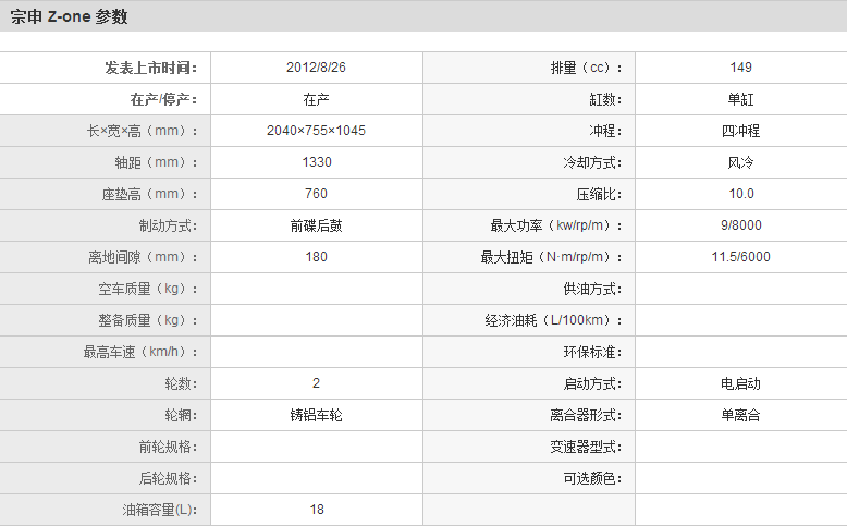 | 宗申 Z-one ZS150-48A(CBB运动版) | |