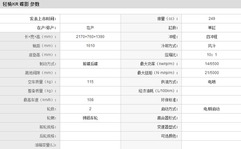 | 轻骑KR 碟影 QM250T | |