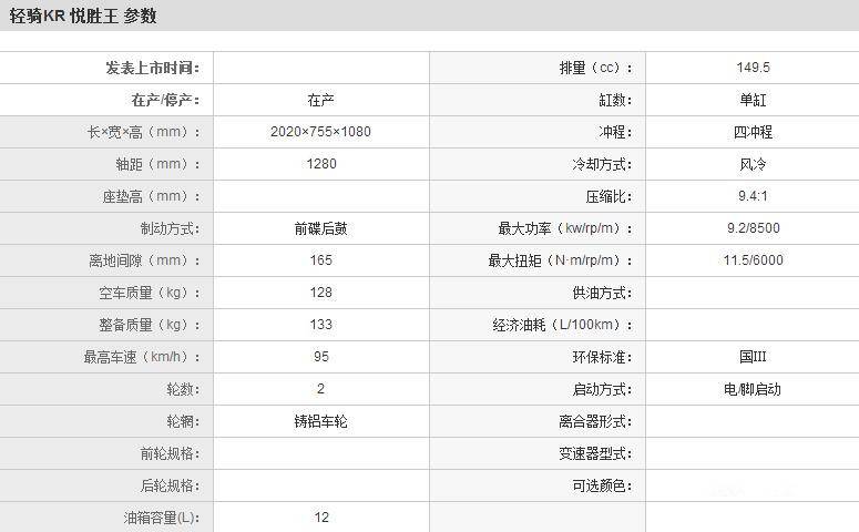 | 轻骑KR 悦胜王 QM150-3K(I) | |
