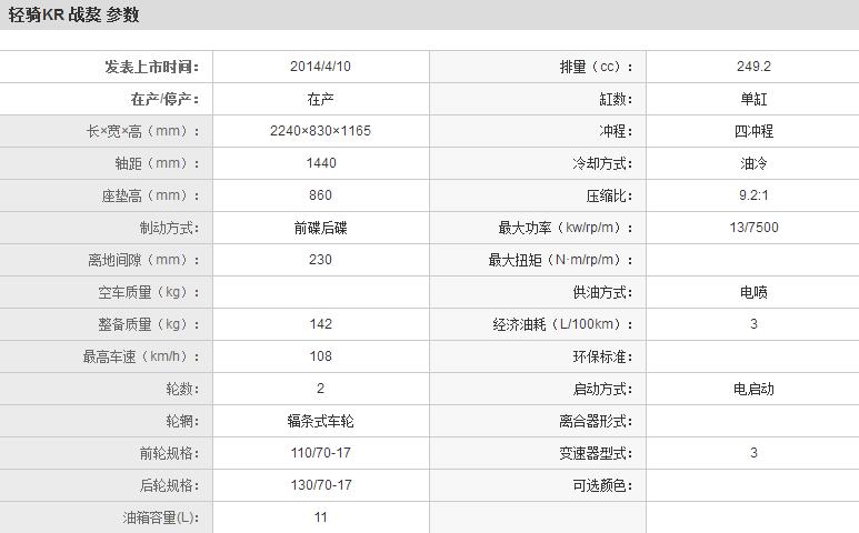 | 轻骑KR 战獒 QM250GY-F | |