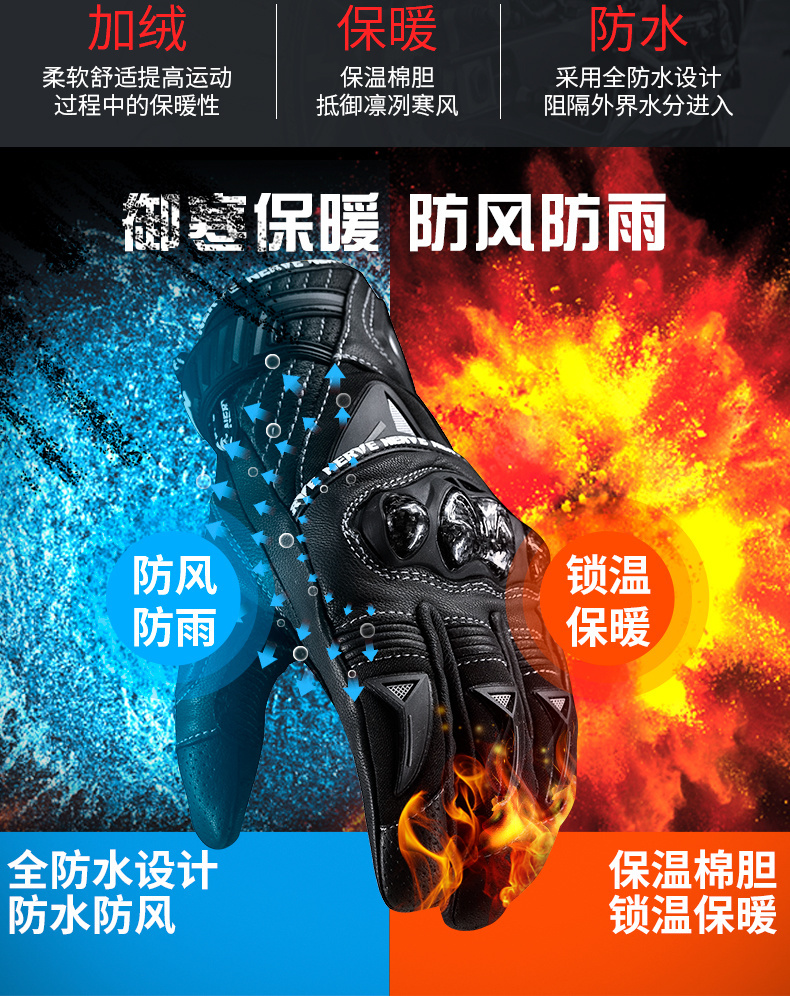 骑行部落摩托车骑行手套冬季加绒加厚保暖防水防寒MTV-08(新)