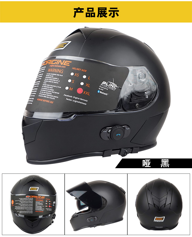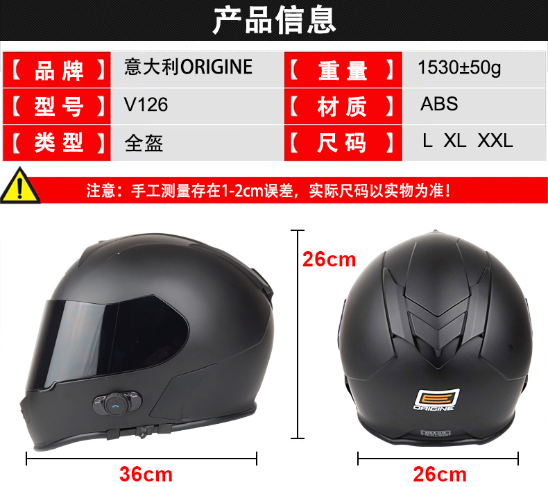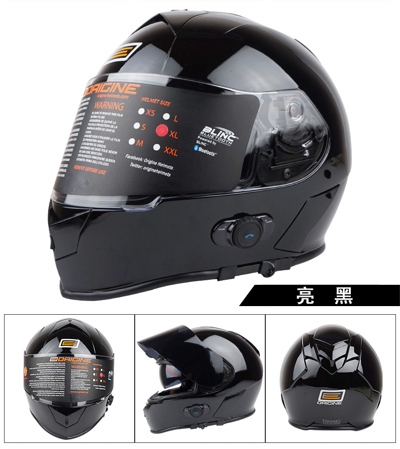 VCOROS V126B蓝牙头盔: 由意大利ORIGINE品牌代工,头盔壳体为台湾进口ABS材料,头盔蓝牙采用美国Blinc品牌,