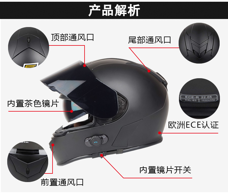 头盔盔型: 为全盔设计,