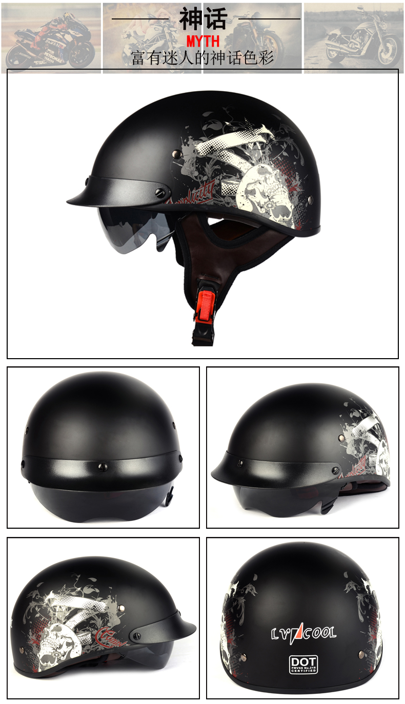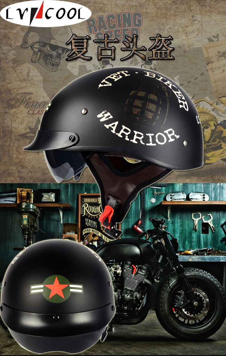 | LVCOOL摩托车头盔电动车男女半盔复古盔太子半盔时尚个性头盔 LV112 | |