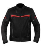 涤纶面料大面积网眼拼接设计,通风效果良好且不易变形,新一代TPV材质护肩护肘,通过欧盟CE认证,EVA护背,多模块设计,依人体姿态弯折变化,拉链底部油箱防磨设计,降低油箱磨损度,涤氨纶+EVA复合小领、桃皮绒领里,柔软亲肤,领口外翻底襟设计,防止拉链与颈部摩擦。