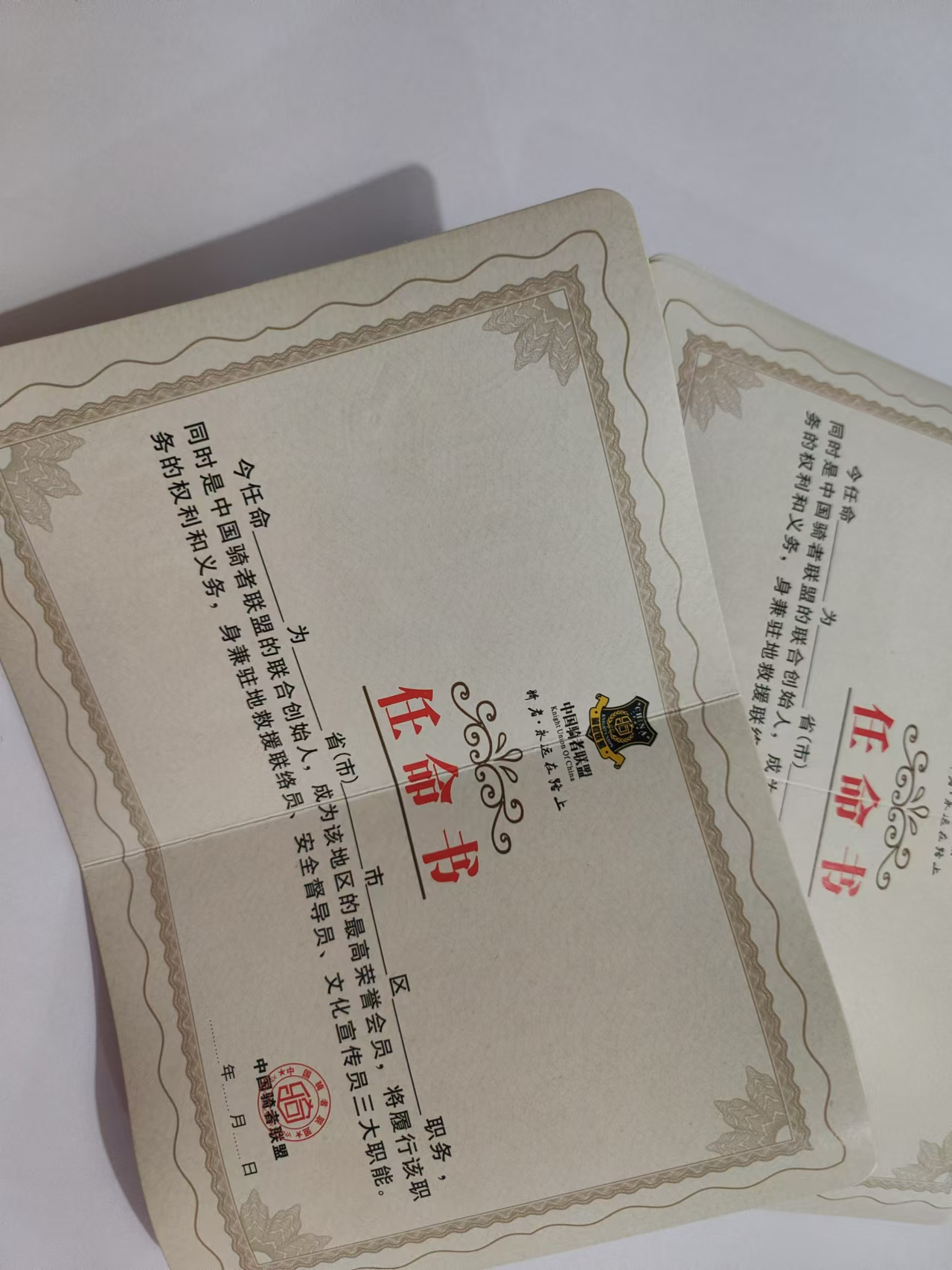 6、中骑联联合创始人职位任命书(制作打印费5元);