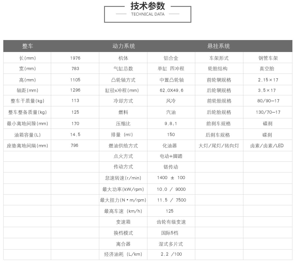 | 启典KD150-J灰色升级版 后碟刹款 | |